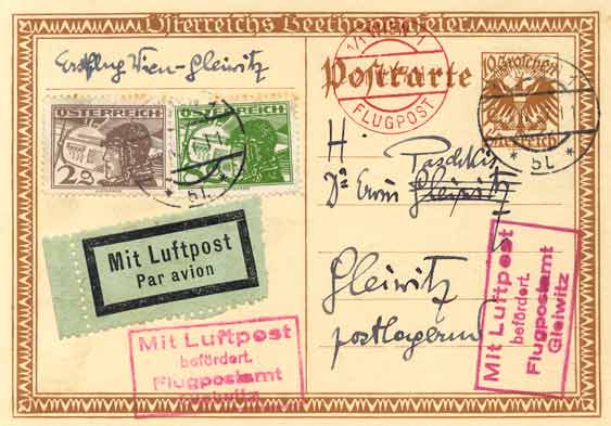 Flight to Gleiwitz (21.4.1927): note the FLUGPOST cancel in red
