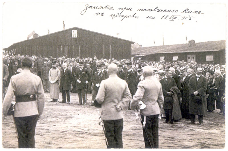 On 18 August 1915, the 85th birthday of Emperor Franz Josef, a monument was dedicated at the camp in the presence of high-ranking Austrian and Ukrainian dignitaries (Figures 13 and 14). The Governor of Lower Austria, Count Richard Bienert-Schmerling, visited the camp on 10 September 1915 (Figure 15). In September of 1917, the Ukrainian Greek-Catholic Metropolitan Count Andriy Sheptytsky visited the camp for three days.