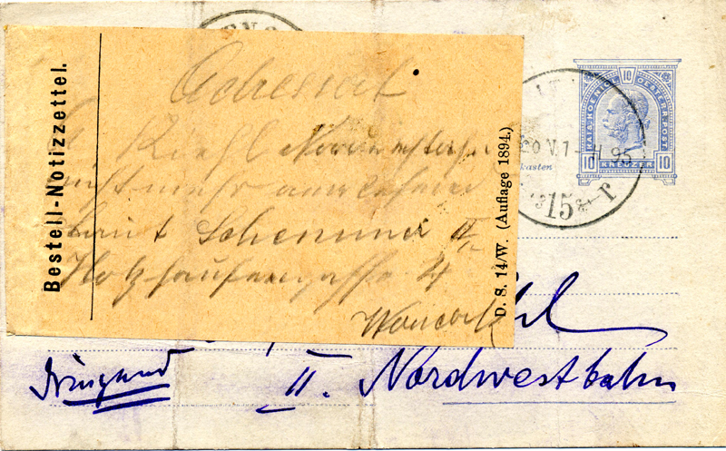 1895 Addressee had moved – use of Bestell-Notizzettel