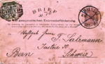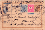 | 1894: Improper but unchallenged use of Hungarian-franked non-pneumatic stationery card |