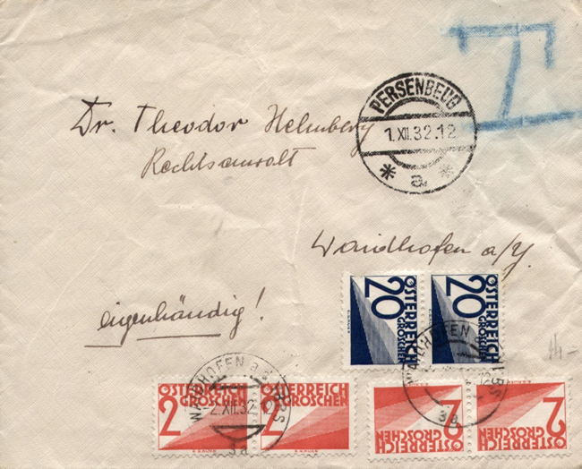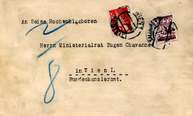Underfranked heavy cover Salzburg to Wien 23.1.1926.