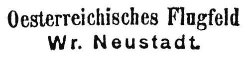 The cradle of Austrian aviation stood in Wiener Neustadt (about 50km south of Vienna). It had the first airport; the first motorized flights took place here and it was the site of the first aviation-related events. [The illustration below is of a violet cancel on a flown card, 8-18 Sep 1910.]