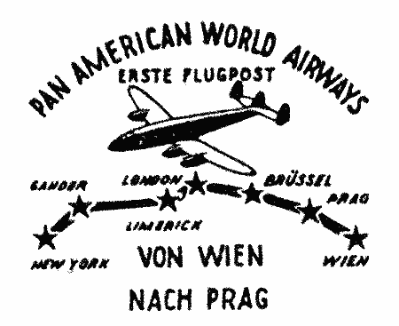 On 16 June 1946, the first civilian machine had landed in Langenlebarn: PANAM (Panamerican Airways) wanted to fly once a week to Vienna and transport airmail as well as passengers and freight. The airplane came from New York with stops in Newfoundland (Gander), Iceland, Ireland (Limerick), Britain (London), Belgium (Brussels), Czechoslovakia (Prague) en route to Vienna; it was well patronised by philatelists, as if people had no other cares at that time. In Langenlebarn, however, the obstacle race for the few passengers was not over: they still had to pass through the Soviet zone. At the exit of the US air force base a large board proclaimed in English: 'Follow the red arrows to Vienna. Driving on all other streets is absolutely forbidden.' The fraternization prohibition began to weaken: one could speak with an American soldier again, but the handshake was still forbidden! And a second board warned: 'The way to Vienna is dangerous. Narrow, winding streets full of ox carts, cyclists, children and unpredictable native drivers'. The Americans had evidently already met with the native, only this time they were not Indians. Perhaps that saved them from the former's fate... However the Viennese population was starving; 70% of the children were undernourished, half with life-threatening hunger symptoms. The Viennese mayor Körner called for help, the UNRRA (United Nations Refugee Relief Association) relief slowly started arriving via Langenlebarn.