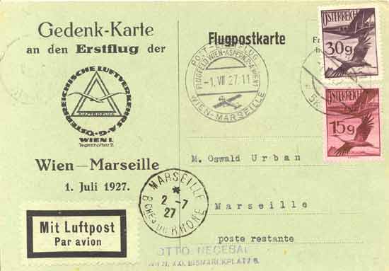 Soon several airlines were flying the same routes, and postal customers could choose by which to have their letters transported. The sender of an airmail from Vienna to Budapest in 1925 besides AIRMAIL had to put a note 'JUNKERS' (Austrian Air Inc), 'ULAG' (Hungarian Air Ltd) or 'COMPT-INT' (Compagnie international de Navigation aérienne), to indicate the respective flight. In the absence of a such statement it was dispatched by the next available flight.