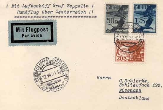 On 12 July 1931 the airship LZ 127 'Graf Zeppelin' landed at the airport in Aspern. It had started around midnight in Friedrichshafen, and arrived around 0530 in the morning in Vienna, where it had to circle for a long time over the city until it received permission to land. 120,000 curious people had come to Aspern, along with President Miklas and almost the complete government, to receive the airship commander Dr Hugo Eckener on his Austrian excursion. With him were 23 passengers and a 40 man crew. For all those who could not be on the airfield, the speeches of greeting were broadcast on the radio.