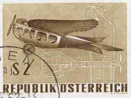 Igo Etrich constructed his 'Dove' in 1907, a high-wing with the characteristic broad, wedge-shaped tail fin. Because of financial difficulties he was forced to submit this Dove to the German airplane manufacturer Rumpler for evaluation, and they made from it their later well-known Rumpler Dove. The sihouette of the airplane became so popular, that at the beginning of WWI the French exclaimed 'Dove!' whenever they saw a German aeroplane. Igo Etrich developed the Dove further in 1912 into the first flight limousine of the world. [ANK1292; 31/5/1968]