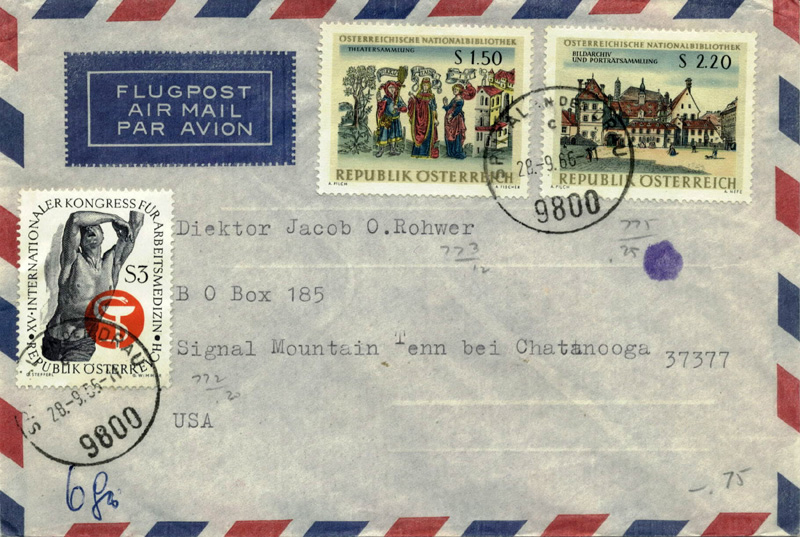 1966-9-28 / 600 / 670 / 10 gram / '6g'K249 applies: 150 per 5g. 6 grams counts as 10 & needs 300 + 2 x 150 = 600. This is a FDC of two of the stamps so it's philatelic overfranking.