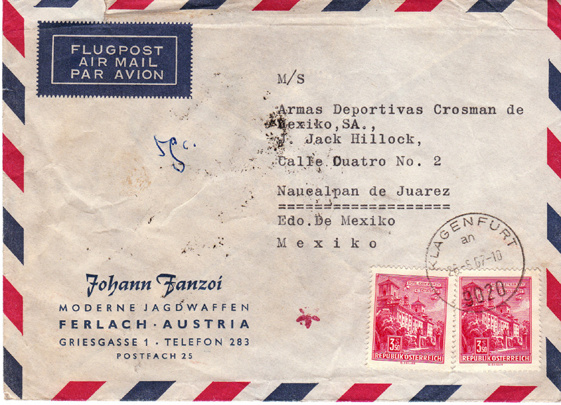 Franked 2 x 350 which was the foreign 20g letter rate so they'd have them in the office. 350 surface + K255 200 5 grams air = 550 so 150 overpaid. Mind you, 200 was the inland letter rate so they'd have had them too! Franked at 10am on Monday - perhaps posted in end-of-week rush the previous Friday and delayed because the checker didn't work weekends...