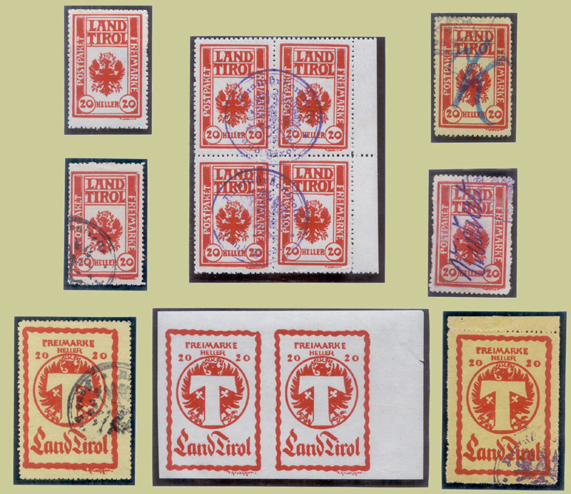 To control parcels containing goods destined for foreign countries, the export of which was forbidden, the Tyrolean Government ordered on April 17th 1919 their control in both postal and rail transportation. Originally it was intended to use small stamps for postal parcels and large stamps for railway parcels but this arrangement was short-lived.