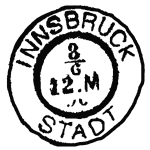 The standard references of Klein and Müller classify and illustrate cancellations on Austrian postage stamps up to about 1900. The codes are incompatible: the (fictitious) cancel illustrated would be a gEj in Klein's system and GS-fy in Müller's! Various authors have extended these classification systems, or invented new ones of their own. The best known is perhaps Votoček, covering the territory of today's Czech and Slovak Republics, but this is a listing rather than a coding system, and is thus not easy to remember when one is rummaging in a dealer's box! In it, the example might have been classified as E.202 In Stohl's book (see below) it resembles his 1k1. |