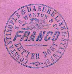 In addition to services provided by the D.D.S.G., another shipping company, T.B. Morton & Co. of Constantinople, founded in 1855, once carried mail from that city to Rumania's Danube ports and the Black Sea. A service was provided from Constantinople via Burgas, Varna, and Constanza to Sulina, Tulcea, Galatz and Braila: see the accompanying maps, on which note that most towns have their 21st century names.