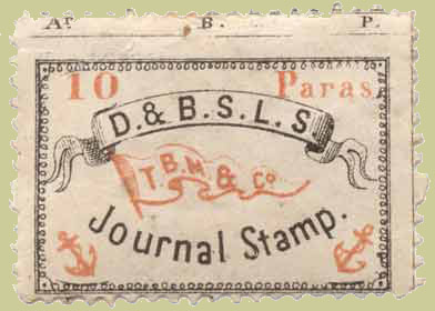 In the next two years, rectangular perforated lithographed stamps appeared in sheets of 50 with values of ½, 1 and 2 piastre for use on letter mail, bearing the initials D. & B.S.L.S. (Danube and Black Sea Line of Steamers) as well as a reference to T.B. Morton & Co.