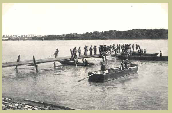 In February 1917 Braila fell, giving the Central Powers control of the Danube. The picture is of a pontoon bridge-building exercise on the Danube.