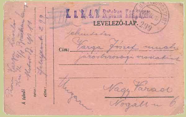 This field post card was sent by a member of 4/1 Bridge Company on 28 April 1917; FPO299 operated in Rumania between August 1916 and November 1918.