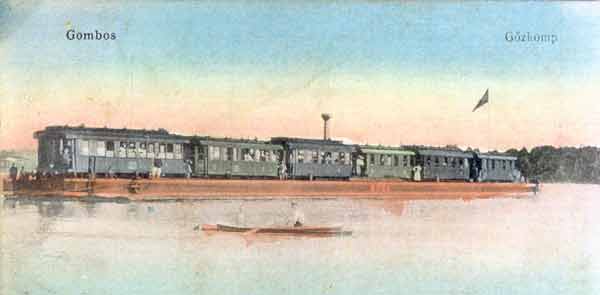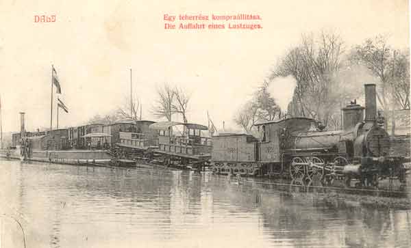 Train on cross-river ferry at Gombos