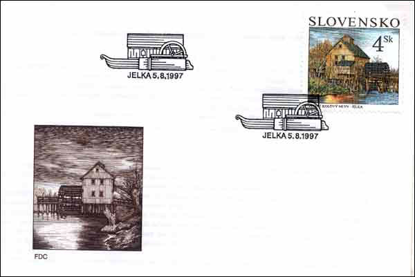 The Danube's strong currents were once used to drive machinery installed on water mills moored in the river. By the 1880s their number had become such a hazard to shipping that their presence was banned. One such mill at Jelka was transferred to the river bank and rebuilt, where it operated until 1951. It became a cultural monument in 1983 and appeared on a 1997 Slovakian stamp.