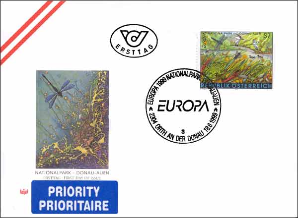 This stamp was issued to commemorate the setting up of the Danube Meadows Nature Park alongside the river just to the east of Vienna. Following a public outcry at a proposal to build a hydroelectric power station at Hainburg, a project was created to protect wildlife on the river between Vienna and the border with Slovakia. Orth an der Donau, where the stamp was cancelled, stands at the mid-point of the National Park; it dates back to the Neolithic and became a parish in the 12th century.