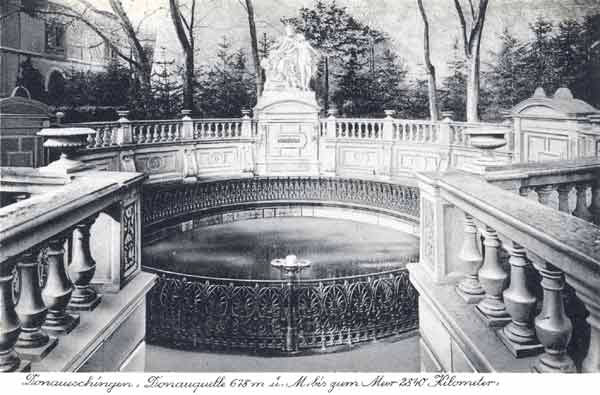 The waters of the River Brigach and those of the Danube Spring (shown above) join those of the River Breg beneath the town of Donaueschingen to form the Danube proper.
