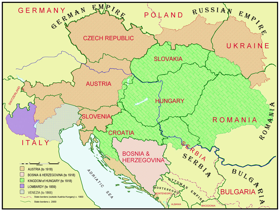 The Austrian-Hungarian Empire and today’s national boundaries