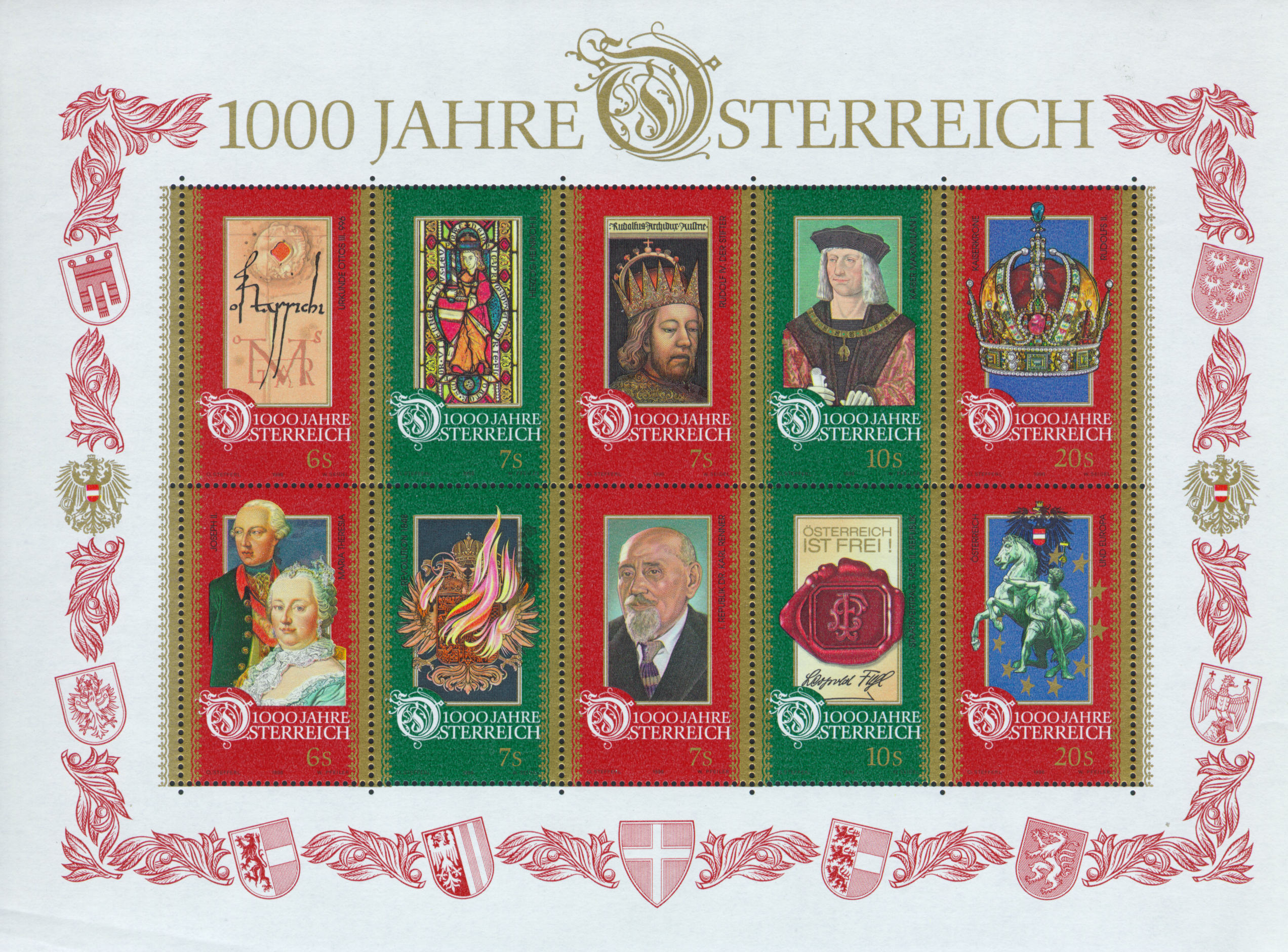The miniature sheet issued in 1996 to commemorate "A thousand years of Austria"