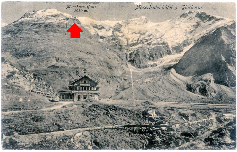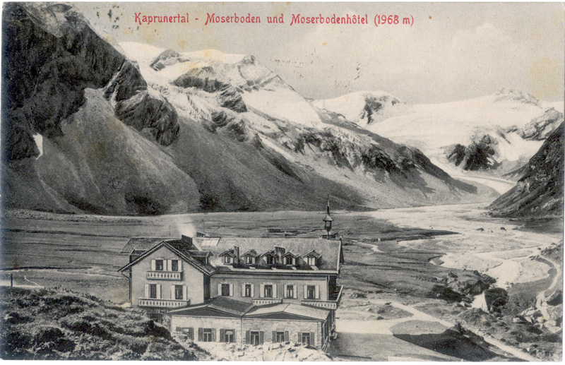 The original Moserboden hotel – note also the Münchner-Haus perched near the top of the left-hand Alp.