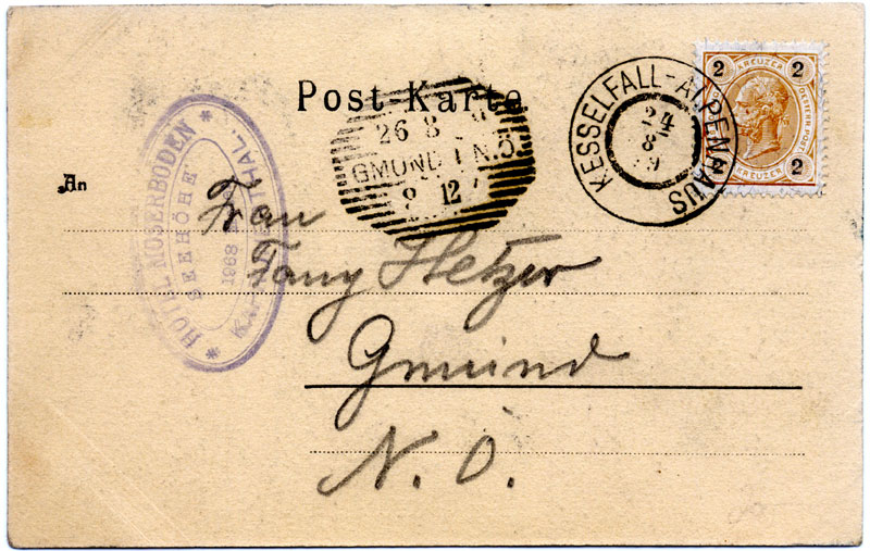 Stohl has the Kesselfall-Alpenhaus as a Summer Post Office from 1896 to 1939 or 1940. He lists two cancels: