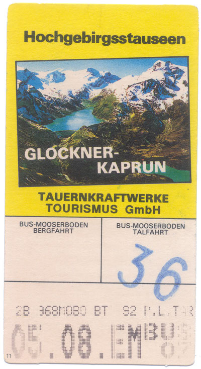 In summer, hordes of tourists are taken in special buses from Kesselfall-Alpenhaus up to Moserboden. The site of the old Moserboden hotel is now under the water. A replacement was constructed (it can be seen on the commemorative stamp), but on environmental grounds it was recently demolished.