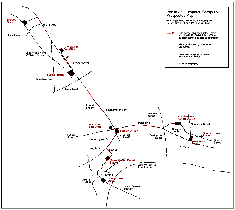 FIGURE: Pneumatic Despatch Company Prospectus Map, traced from the original.