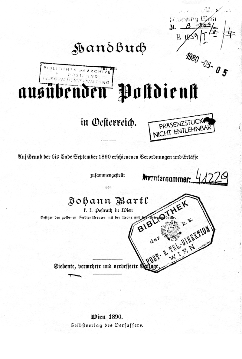 Johann Bartl's "Handbuch ausübenden Postdienst in Oesterreich", Wien 1890