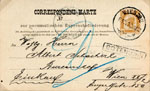 | 20 Kr | Jan? 1884. Card sent from Fruchtborse to Taborstrasse (very near!) then by messenger to Klosterneubergstrasse, then in Bez. 2. |