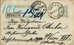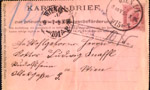 | ?? | Sent from Wien 15 1/1 at 11:50 on 10. VI.1890. Arrived at Wien 24 20/2 at 15:50 10.VI.1890 (month could be VII), then by messenger to Rotonde, Prater. |