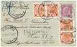 | 10 h | 22 April 1908. Ottakring (Wien 102) to Nordwestbahnhof (Wien 24) for delivery to the Rosenthal warehouse in the 20th district, across the Donau canal and outside of the Viennese local postal district |