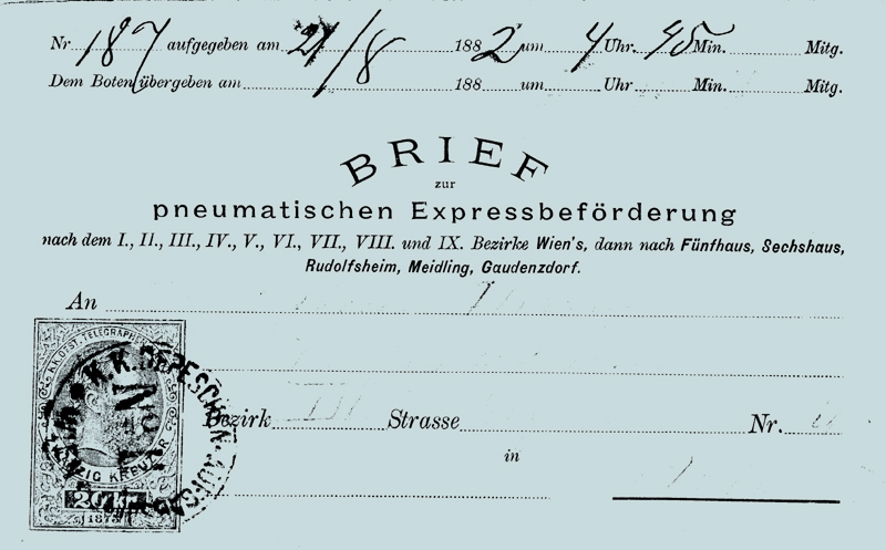 The seventh card, from an auction catalogue, has a cancel with K K DEPESCHEN-AUFGABSAMT / No II. It was addressed to nr 9 Kegelgasse in Bez. III (the original is marginally more readable!); number 9 is at the Wien Mitte end of Kegelgasse (which is quite long) and delivery from Landstrasse would be sensible.