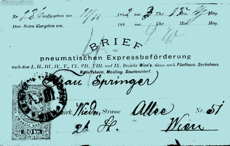 The eighth card, from an auction catalogue and dated 11 Dec 1882, has a cancel with K K DEPESCHEN-AUFGABSAMT / No III. It went to Wieden 'Allee' which will be Alleegasse, now called Argentinierstrasse. The Wieden office at Neumangasse is reasonably close. So KKDA-III isn't Wieden.