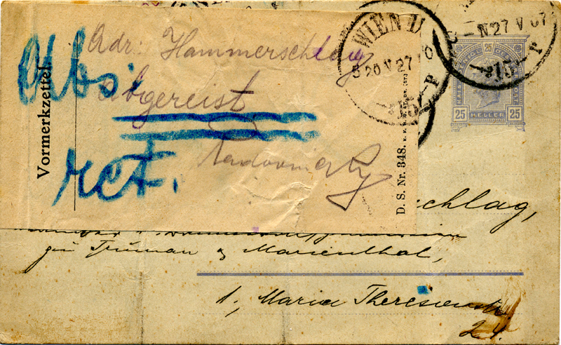1907 Addressee gone away – use of Vormerkzettel