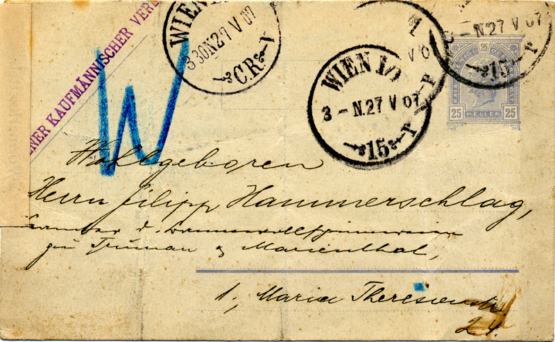 | From: | 15 – Kärnthnerring | May 27 1907 at 3:00 pm |