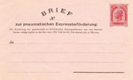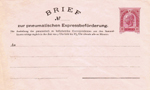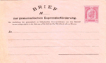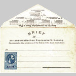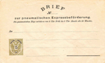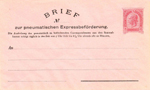 | 1873 telegraph-stamp imprint | 20 kreuzer blue, printed "PNEUMATISCHER BRIEF an"; validity 1 March 1875 to 31 October 1884 |