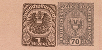 The special stationery of letter-cards and post-cards continued to be issued until 1922, with imprints of 27½Kr and 25Kr. The last envelope was the 45H Jubilee issue in 1908. The Festschrift "120 Jahre Österreischischer Philatelisten Club Vindobona / 150 Jahre Österreichische Briefmarke" contains an article by Peter Kroiss on pp 243-252 which discusses the validity dates of inflation-period imprinted stationery. He gives issue, end-of-sale, and valid-until dates where these have been found; some of the valid-until dates were explicitly decreed but most are when the increasing rates plus the unavailability of supplementary-franking adhesives of suitable values rendered them effectively useless. He reminds readers that items with a high-valued imprint could be used for ‘normal’ postage when the latter’s rates rose to equal or exceed the imprint. On pages 248-9 and 252 he deals with pneumatic stationery, and lists the issue and validity dates. This data is incorporated in our tables.