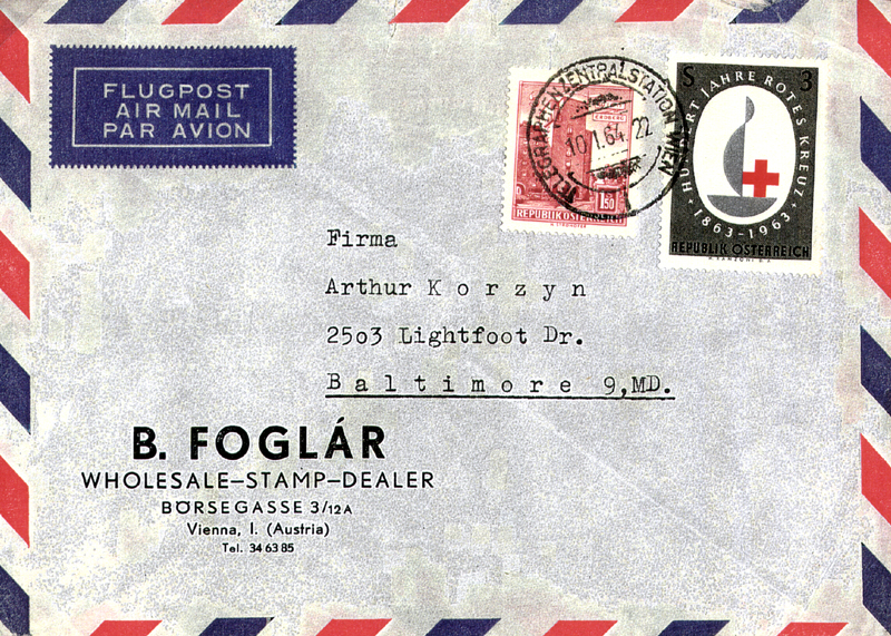 The final example is given only as a warning! Although it carries a TELEGRAPHENZENTRALSTATION WIEN cancel, showing the use of that office as an airmail collecting point, it is dated 1964 so cannot have been pneumatically transported.