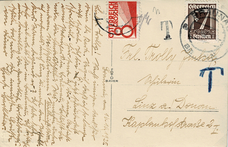Underfranked heavy cover Salzburg to Wien 23.1.1926.