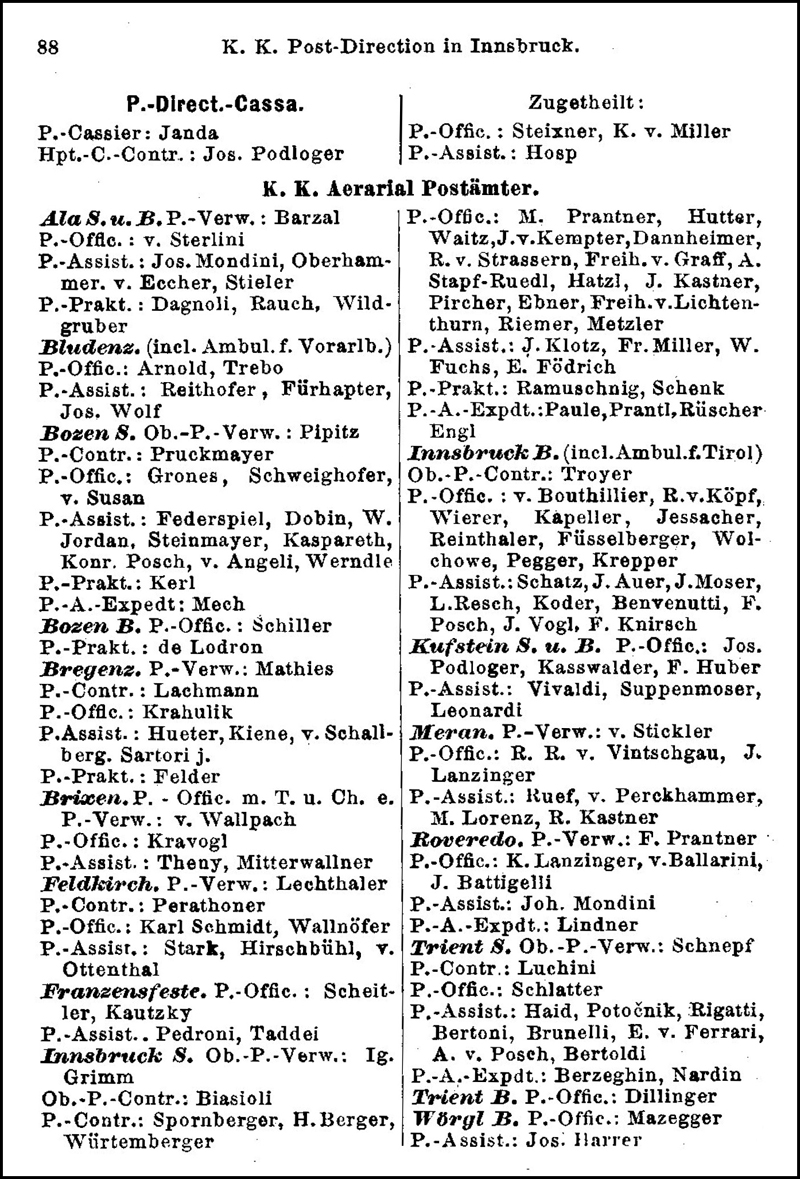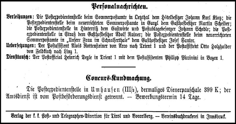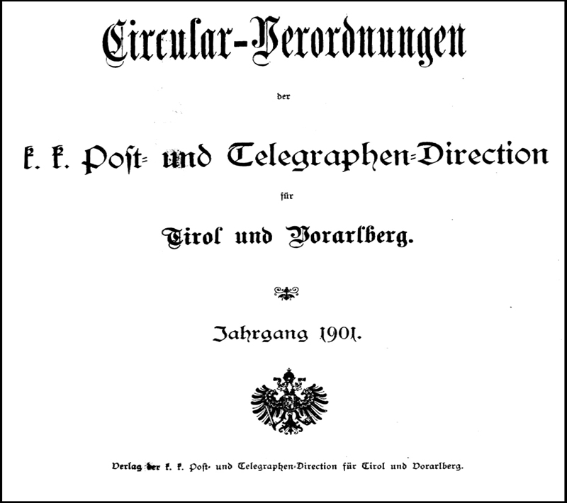 The Postal Directorate in Innsbruck issued its own versions of a few pre-1894 decrees. From 1895 these form an important secondary source for local events, useful for verifying the Zirkularverordnungen that are discussed below.