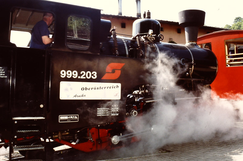 The arrival of new steam locomotives meant effective retirement for the remaining four Krauss locomotives, however they are still there and operational and are used as required in the main season of July and August. Today at the Sankt Wolfgang depot there are two motor railcars 5099.001 and 002, six Krauss engines 999.101-106 and the four SLM oil-fired locomotives 999.201-204.