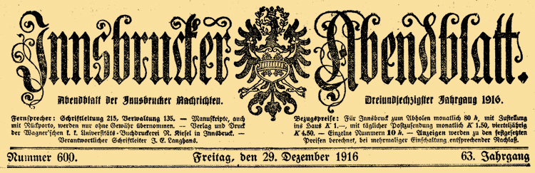 So, at last we have the Austrian Decree: k.k. HM Erlass vom 29. Dez. 1916, Zl. 39.045/P. Or at least the filing reference for it. 'Zl' means either Zahle or Zeile or (akten)Zeichen depending on who you ask. I have tried to find this in the on-line index for the State Archives but failed. I did find that "The fire at the Palace of Justice in July 1927 considerably reduced the holdings of the Allgemeines Verwaltungsarchivs" - not vey promising.