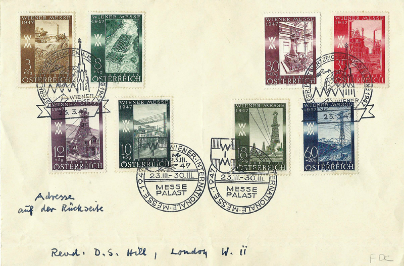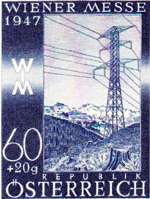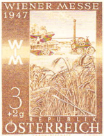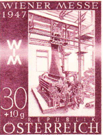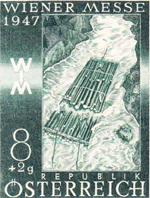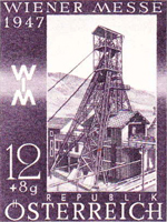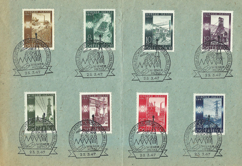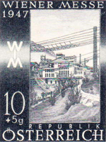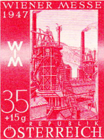 A set of eight stamps was issued on 23 March 1947 for the Vienna Fair, which was held from 23 to 30 March that year. The intention of the set was to publicise the productive capacity of Austria, so each stamp depicted some aspect of Austrian industry. They were all designed by Heinrich Blechner, who was born in Vienna on 7 March 1895 and trained as an engineer; after 1918 he became an industrial artist. The authorising decree [1947 Post- und Telegraphenverordnungsblatt Nr 7 item I.31] gives many details, and an appendix of the Official Description.
