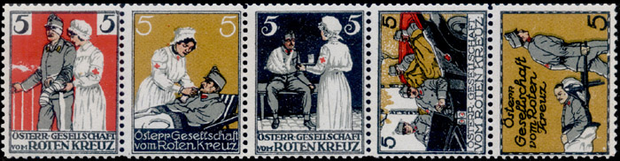 Red Cross charity stamps from 1914.